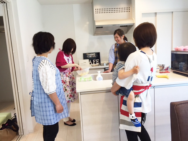 6/4(月)、千歳北陽のモデルハウスにてお菓子作り教室のイベントがありました♪今回は簡単焼きドーナツを作ります!F×Fモデルのアイランドキッチンはスペース広々なので、みんなで囲んで作業が出来ちゃいますよ~(←ちょっとだけモデルの宣伝)