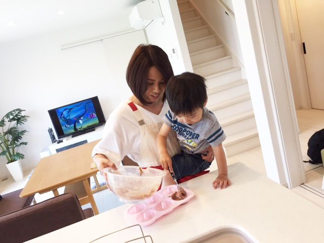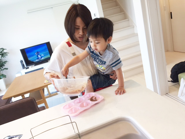 ちゃんと型に流し込めました!お手伝いありがとう(⌒∇⌒)