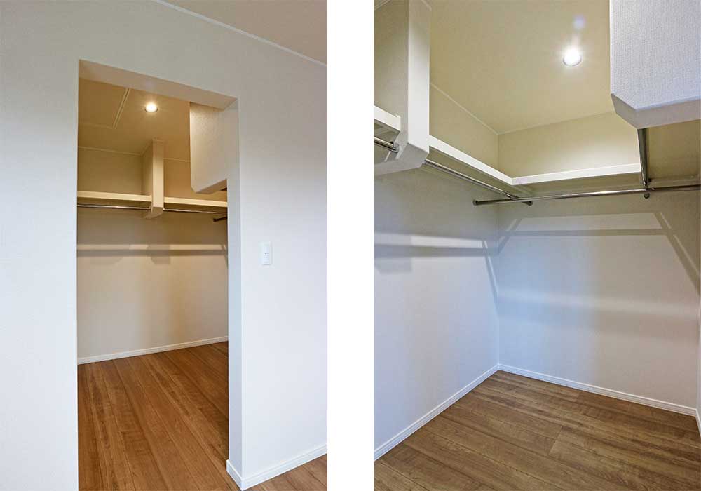 協栄でお家を建てられるお客様はウォークインクローゼットをつけられる方がとても多いです。沢山仕舞えるし、隠せるし、便利ですよね。