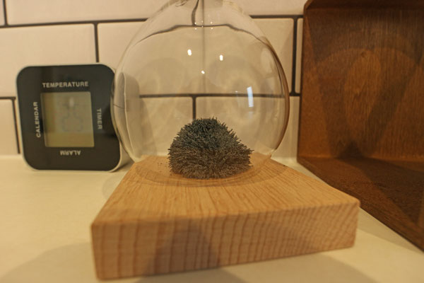 左から二番目の砂時計。この中の砂が砂鉄でした!そして台座?に磁石が埋め込まれています…。