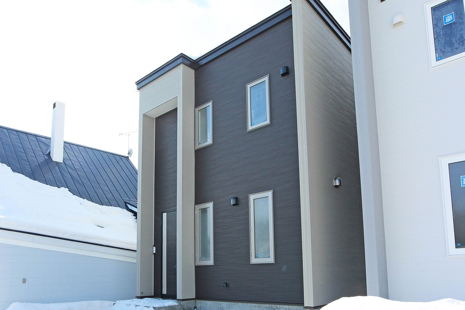 恵庭住吉ES-Ⅲ:通称『建売三兄弟・長男』。3棟で一番最後に完成する予定のはずが、協栄ハウス的都合により他より先にできるという逆転劇を披露。現在は仕上げの段階で、3/17のOPENを待っている。初回広告はちゃんと誌面広告3/16号に掲載が決定。外壁はブラウン系のツートーンカラー、白の内観にナチュラルな木目床と落ち着いた印象。ガス暖房の家なのに玄関土間部分には床暖が入るなど、完成直前に広告担当を驚かせた粋な長男。