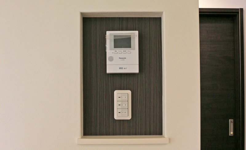 こちらはキッチン横のニッチ(壁面の一部をくぼませてつくる飾り棚)。スイッチ類を収めてスッキリさせているのですが、背面のクロスがアクセントになる強めの色で、これも一つのインテリアになっています。こういうところにも施主様のこだわりが感じられますよね(^^)