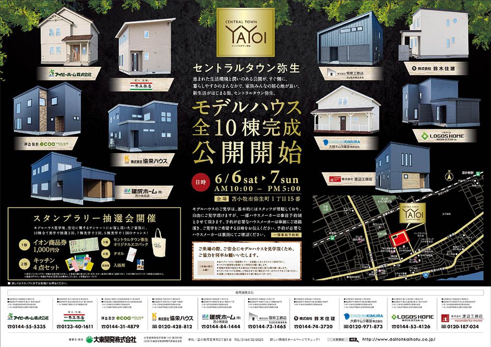 苫小牧の大きな住宅イベントといえば、数社集まっての合同イベントがおなじみです。今年はGWに弥生町の新しい造成地がOPENしたのですが、惜しくもコロナの影響でOPENイベントは中止になってしまいました。そこで自粛解除となった今、改めて仕切り直しての開催が決定いたしました!こちらのチラシ、苫小牧では新聞や折り込みに入ると思いますが、お手元に届かない皆様はこちらからご覧ください。(下の画像タップでPDFも開きます)週末は弥生町でモデルハウス巡りをしましょう♪