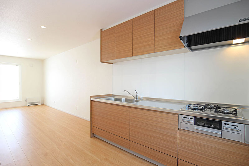個人的にこの眺めが好きです。実際住んだら食器棚とか入るからずれるんでしょうけど。