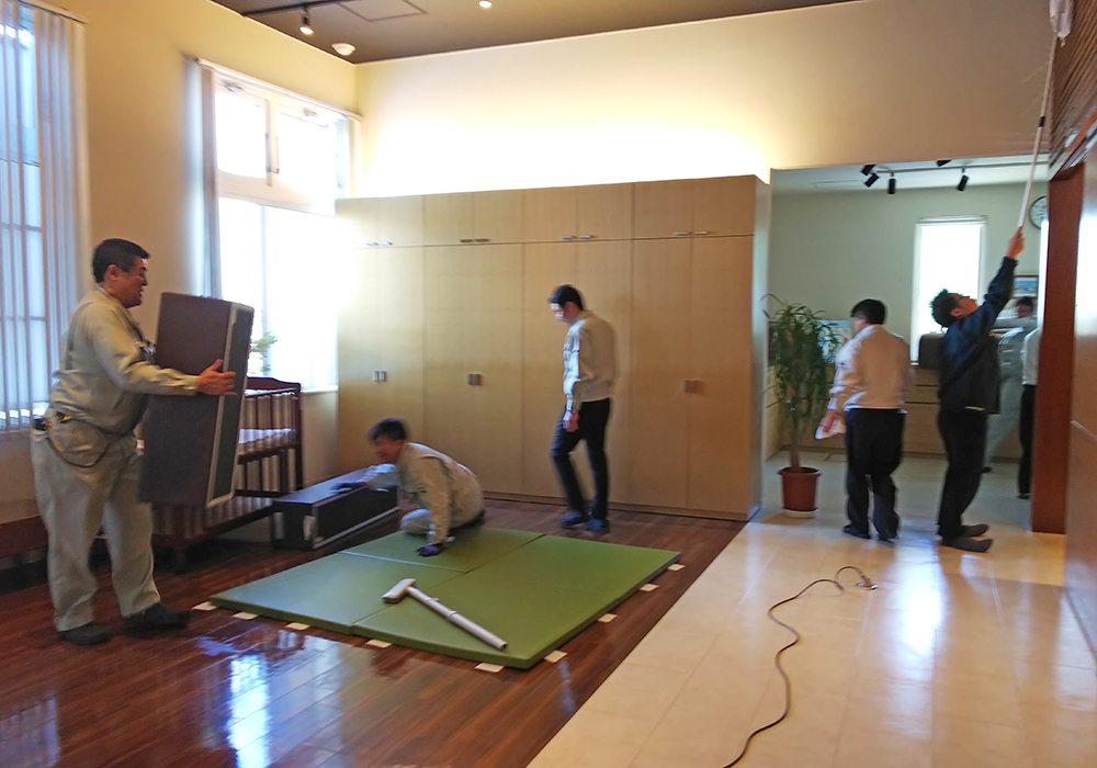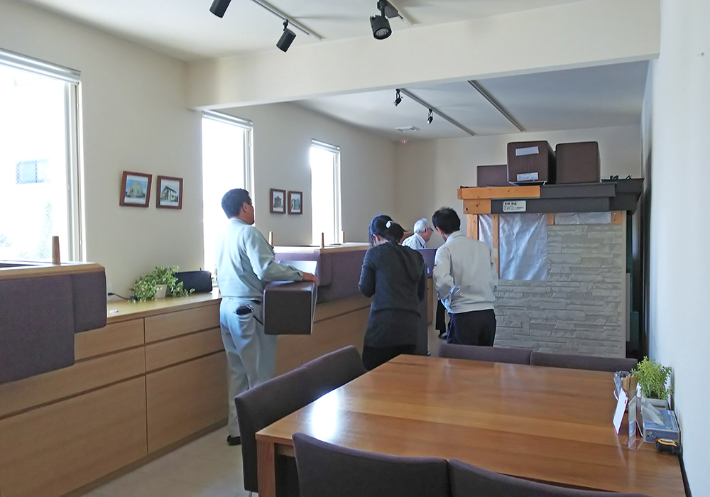 ここはショールームです。お子様が遊ぶキッズスペースが取り外されているところですね。(大きいので意外と大変なんですよ?)