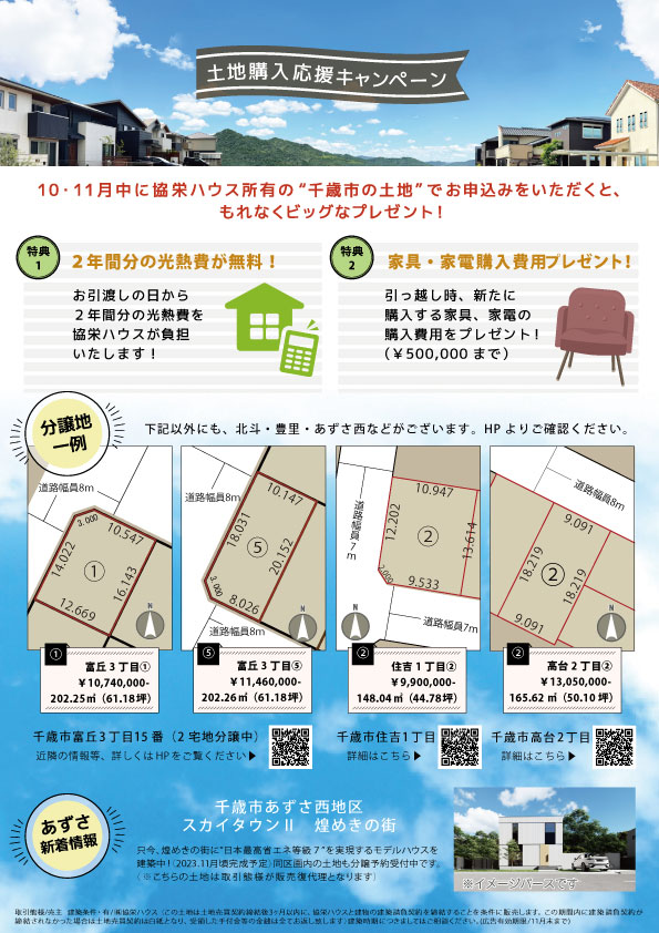 10・11月中に【協栄ハウス所有の千歳の土地】で、建築のお申込みをすると