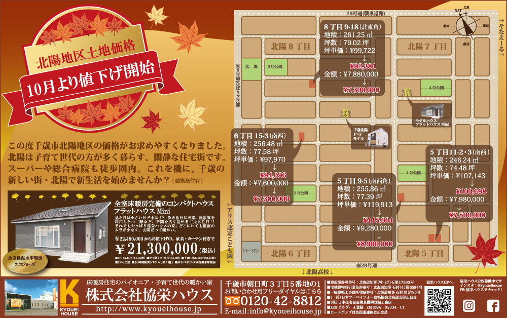 この度千歳市北陽の5区画が、お値下げとなりました!