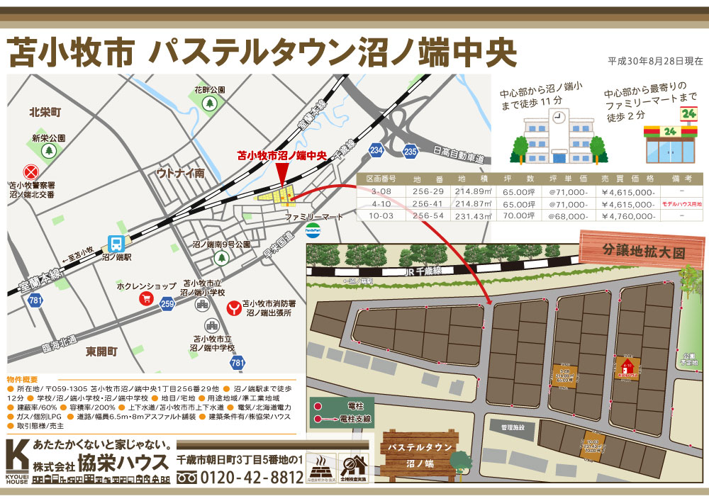 協栄ハウスの土地は3区画、うち1つはモデルハウス建築が決定しています。コンビニも近いし、何より土地の金額が魅力的ですね。苫小牧検討中の方、どうぞよろしくお願いいたします(=゚ω゚)ノ