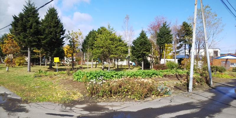 こんな感じですぐ目の前があずまソフトボール場という、千歳駅まで徒歩13分なのになんとものどかな雰囲気漂う立地です。千歳駅までの交通は、徒歩3分のところに“青葉ヶ丘南”のバス停がありますので【中央バス・20東部隊線千歳駅前行】が利用できます。