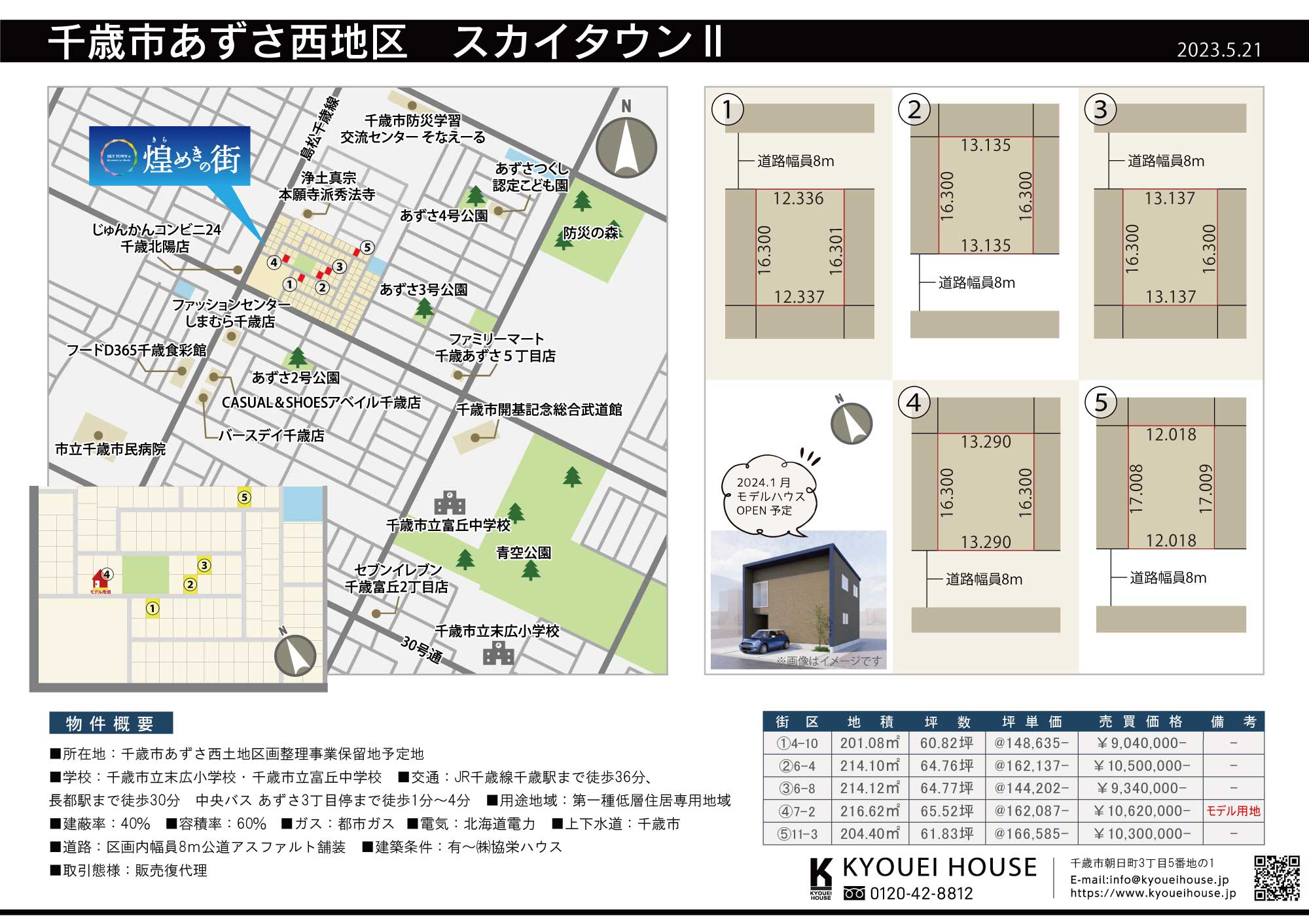 土地情報を追加しました 千歳・恵庭・札幌|モデルハウス・新築・戸建て・土地【協栄ハウス】 > 全件 > お知らせ > 土地情報を追加しました 新しい土地情報を追加しました! 現在整理中のニュータウン、あずさ西地区です!実際に建築が可能になるのはまだまだ先なのですが、各社販売開始していますので協栄ハウスでも情報を公開します。 ④番のある区画は先行して各社モデルハウスが建ちます。 現在まだ現地写真が撮れる段階ではありませんので、進み次第順次土地情報ページ内で公開していきます。 « 前のページ 一覧に戻る 次のページ » アーカイブ 年を選択 2025 (11) 2024 (81) 2023 (87) 2022 (119) 2021 (165) 2020 (154) 2019 (166) 2018 (246) 2017 (206) 2016 (47) 2015 (23) 2014 (5) カテゴリー カテゴリを選択 全件 お知らせ イベント その他