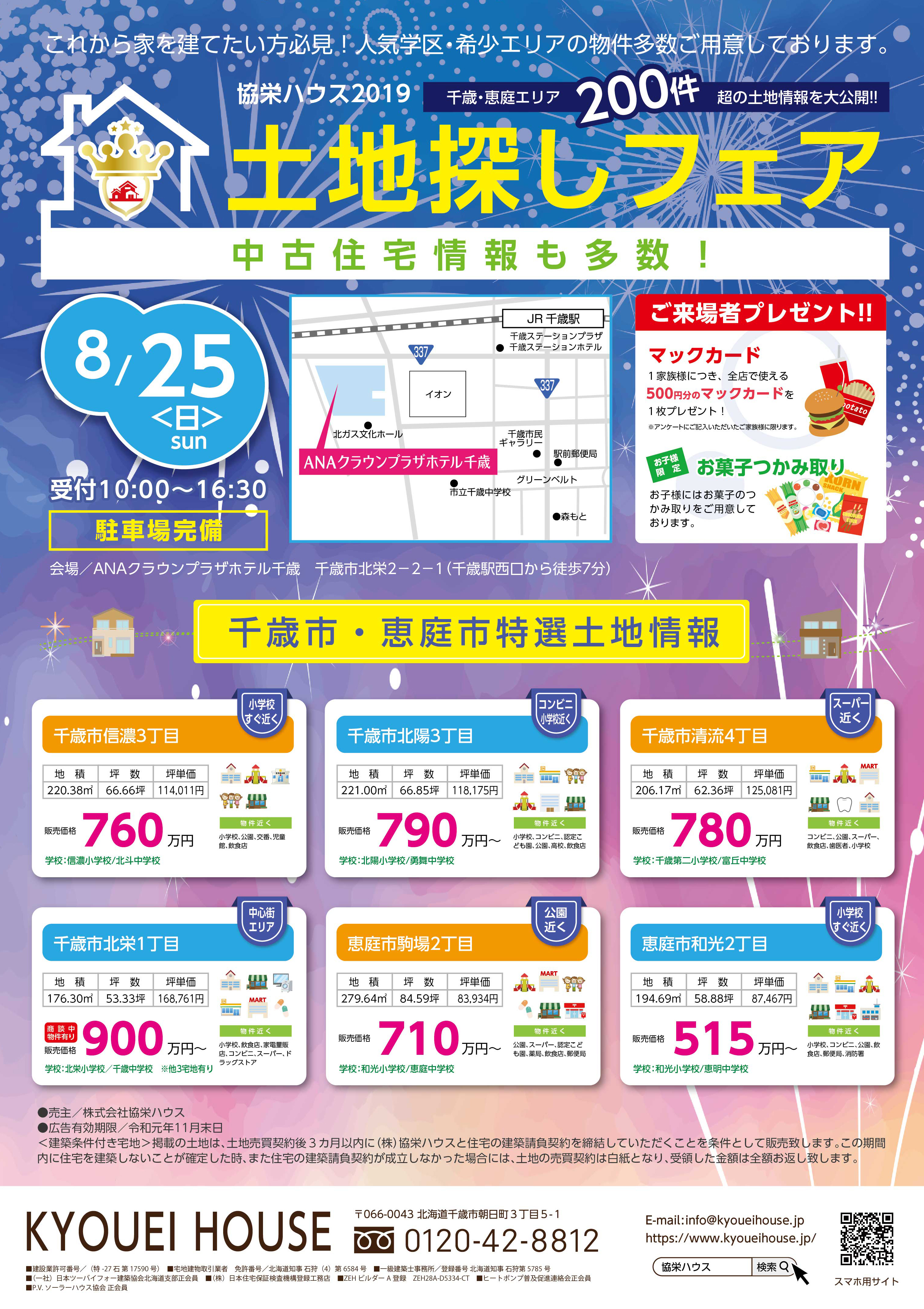 おなじみのデザインのチラシで毎回開催しております土地探しフェア。だんだんと土地が少なくなり、苦しい状況ですが、そんな時だからこそこれをやらせていただきます!