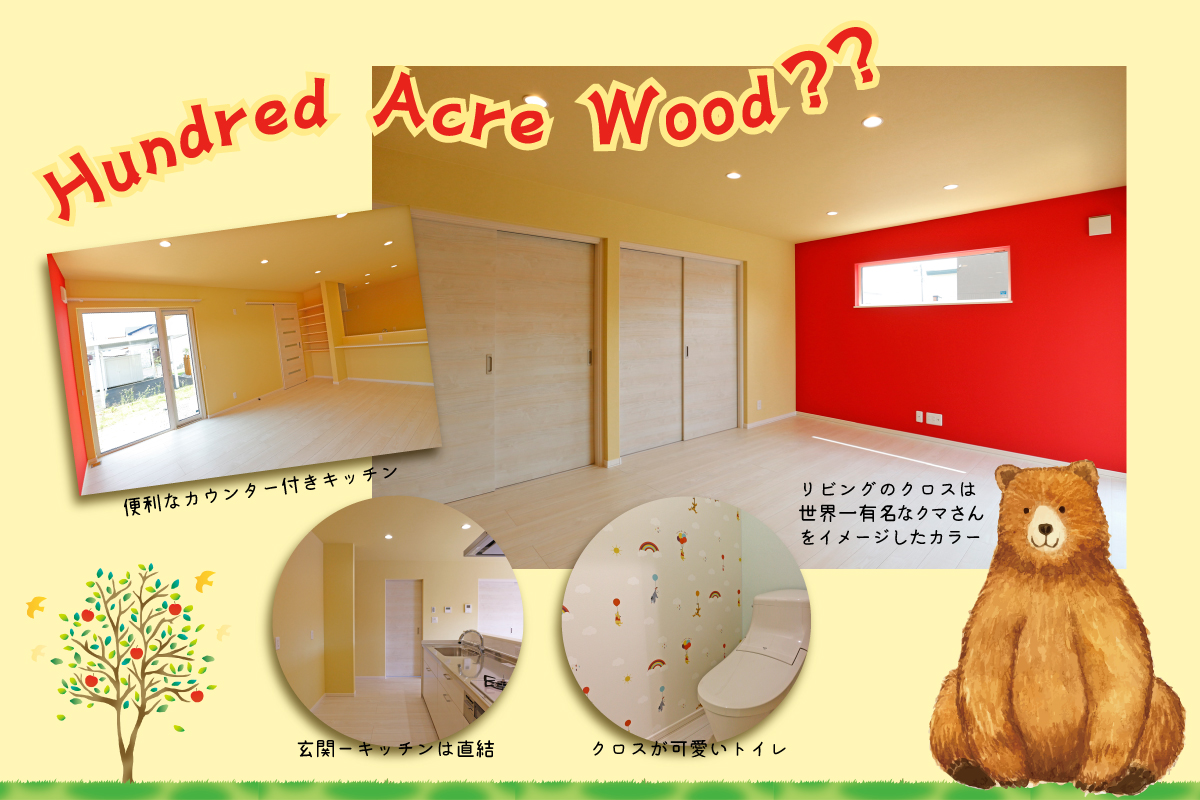 オーナー様の大好きな黄色いクマさんをイメージしたお家は、まるで○ーさんに包まれているかのよう!(※権利上表記できません、お察し下さい)