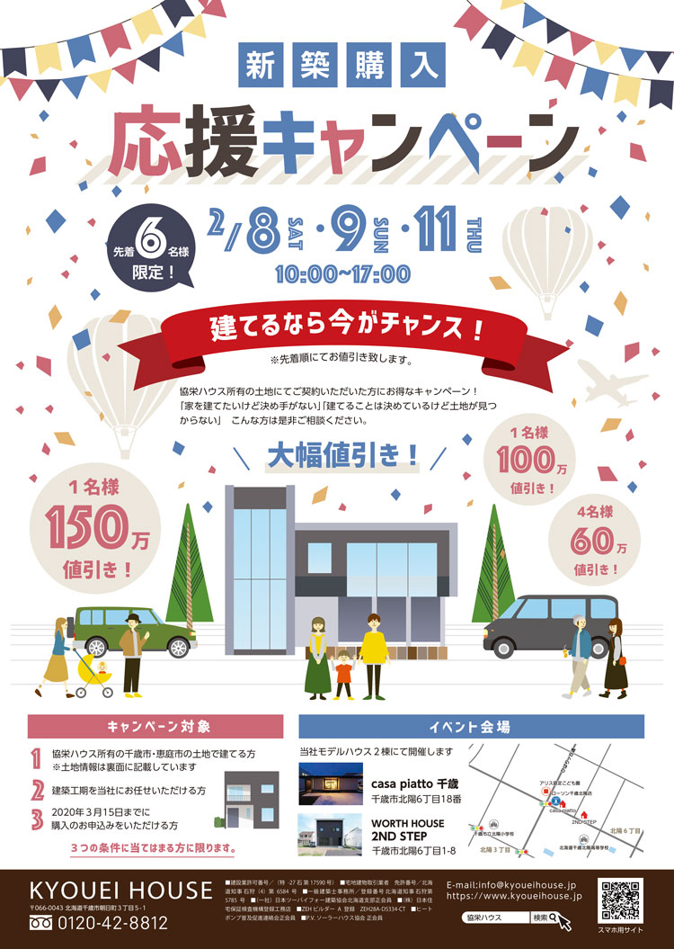 そんなわけで、今“千歳恵庭の協栄ハウスの所有地を検討されている方”に、先着で建築資金のプレゼントを実施しようということになりました!いくつか条件はあるものの、【新築購入応援】にはなると思います(^^)一回モデルハウスに行ってみようかな…なんて考えていた方には丁度いいタイミングですよ♪…そしてさらに翌週、2/15・16にはライフプランニング相談会も控えています。モデルを見てマイホーム取得の夢が膨らんだところで、じゃあ実際お金の計画はどうしよう?となるかと思いますので、こちらも合わせてご検討下さい。
