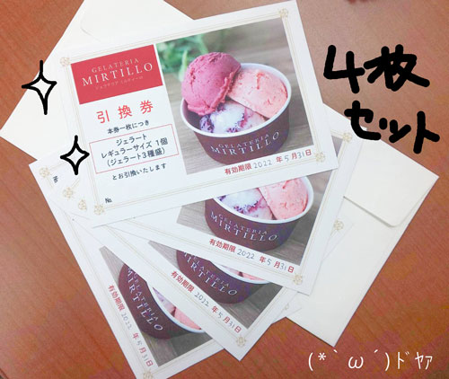 協栄ハウスは2回目の開催となる今回も、千歳のお店を応援!という訳でジェラテリアミルティーロのアイス券セットです。