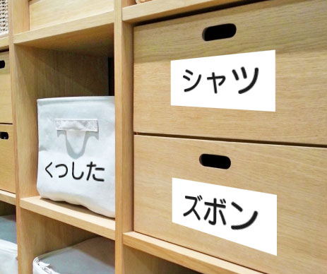 特に自分の机を買ってもらったり、部屋をもらったりした場合は“しまう場所”をしっかり作って、わかりやすくしてあげてください。お子様が慣れるまでは大きいシールに大きい文字で“ハンカチ”とか“シャツ”とか書いて収納場所に貼ってもいいと思います。