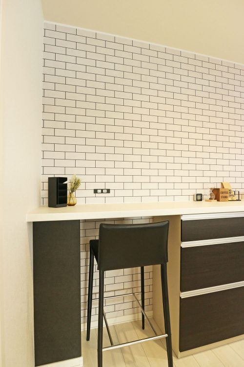 そしてカウンターの延長上にあるこのスペース、クックパッドを見たりするのに最適なんです。油が跳ねたりしないようコンロと離れたところにあるのもポイントですよね。