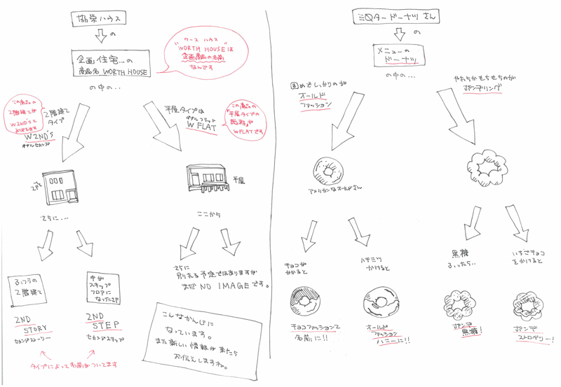 ところで…最近の協栄ハウス、WORTH HOUSEだのWFLATだの、何がなんだかよくわからないよ!って思ってる方もいるのではないでしょうか??(私も最初わかりませんでした)というわけで、この企画住宅の商品をちょっと某ドーナツ屋さんの商品に例えてみました。
