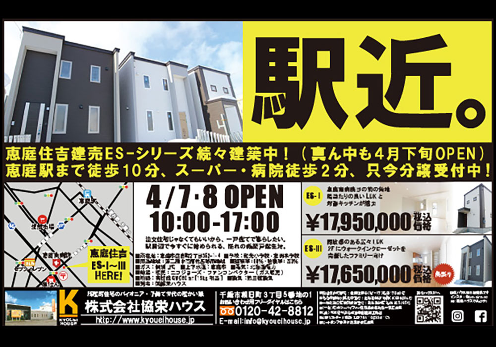 今週ちゃんとさんの誌面広告に恵庭住吉のES-Ⅲ・Ⅰが載ります。