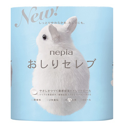 ネピアの高級トイレットペーパー、『おしりセレブ』です♪このウサギの後ろ姿、見たことある方は多くても、お家に連れ帰った方は少ないのではないでしょうか?こちらの4ロール入り1パックを、アンケートご記入いただいたご家族様にプレゼントいたします。営業部Kのおススメ“一度使ってみたいとは思うけど、なかなか手が出せない品”おしりセレブ。