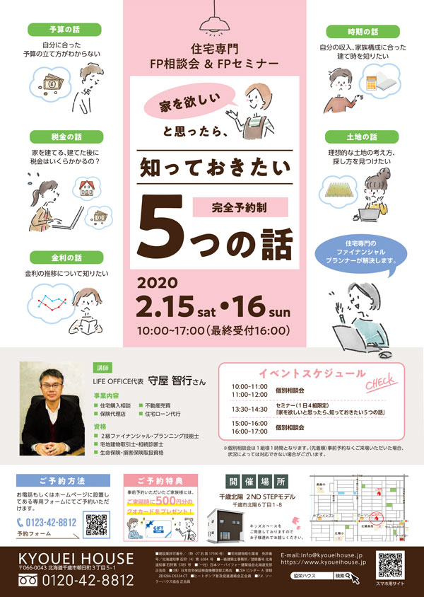 来週、2/15・16は千歳のモデルハウスにFP(ファイナンシャルプランナー)の先生をお呼びします。