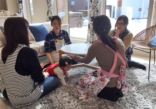 ↓炊飯器のスイッチを押した後は、みんなで座って雑談タイム♪皆さんお子様がいるので子育てトークに花が咲きます。