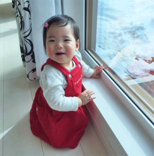 ↓ママが作っている間もご機嫌に遊ぶSちゃん♪いつもと違うお家、楽しかったかな??