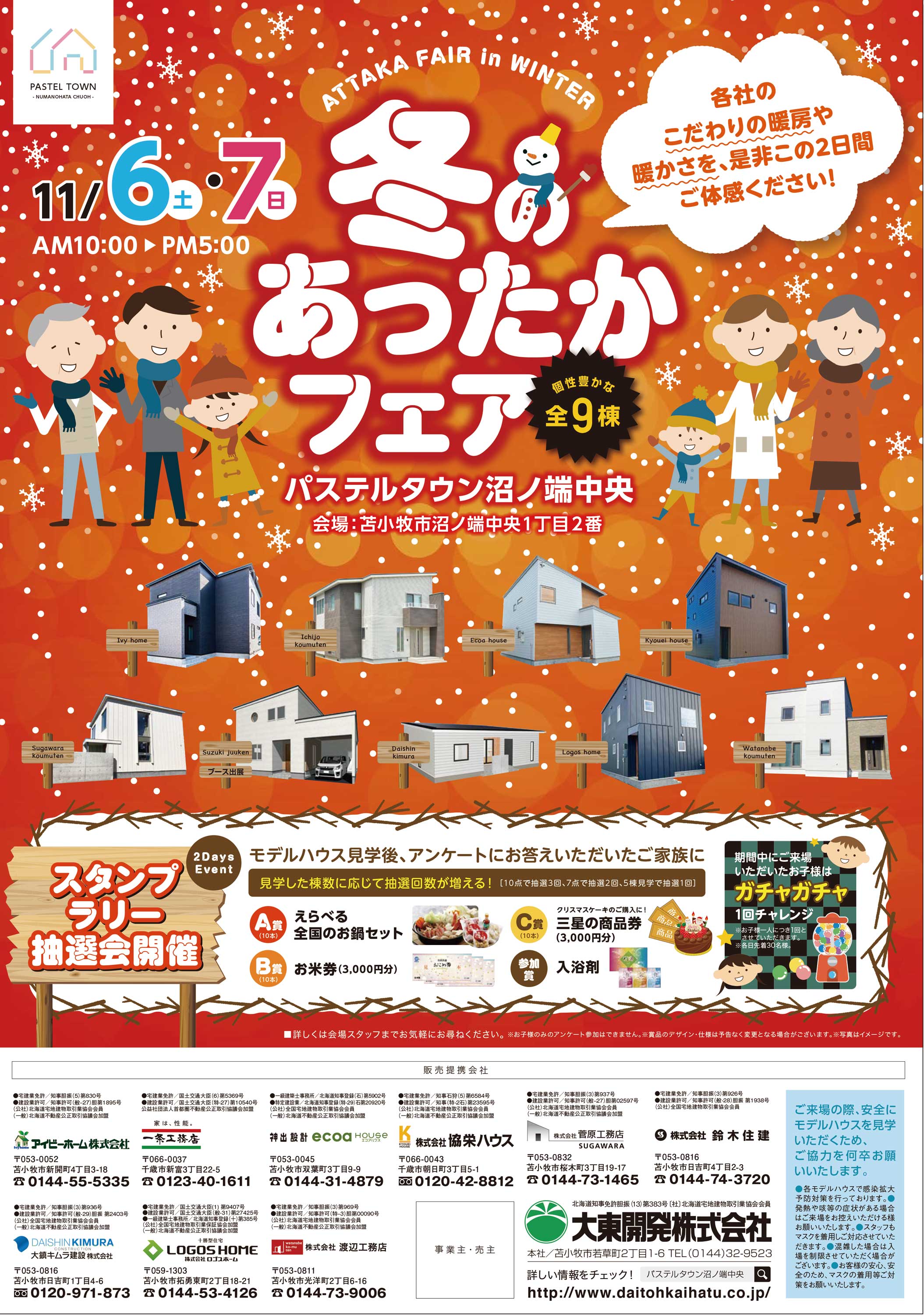 パステルタウン2021最終イベント 千歳・恵庭・札幌|モデルハウス・新築・戸建て・土地【協栄ハウス】 > 全件 > イベント > パステルタウン2021最終イベント 沼ノ端モデルのある、”パステルタウン沼ノ端中央”で、今年最後の合同イベントを行います! …スタンプラリー回るのも寒いですもんね。雪降るし。 というわけで、今週末の開催後は来春までお休みです!(合同イベントがお休みなだけで、各社モデルハウスは個別に開けてますよ!) 協栄ハウスももちろんほぼ毎週OPENしてますので、イベント有無にかかわらずあったまりに来てくださいね(^^)/ チラシデータ貼っておきます♪ « 前のページ 一覧に戻る 次のページ » アーカイブ 年を選択 2025 (11) 2024 (81) 2023 (87) 2022 (119) 2021 (165) 2020 (154) 2019 (166) 2018 (246) 2017 (206) 2016 (47) 2015 (23) 2014 (5) カテゴリー カテゴリを選択 全件 お知らせ イベント その他