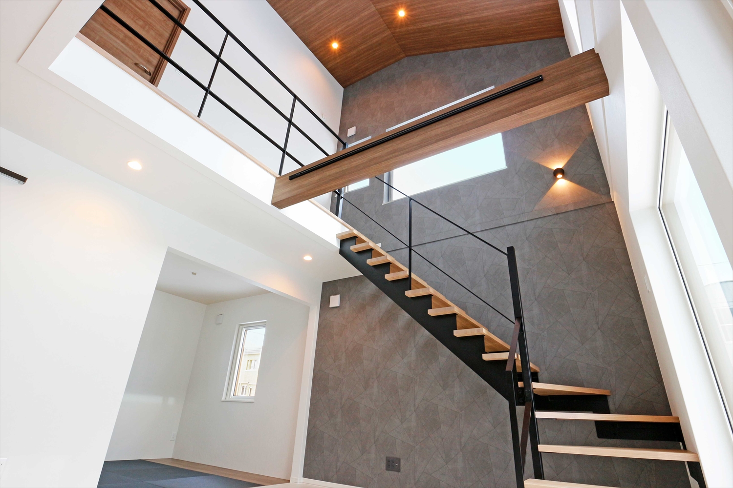 延床43.42坪、(ガレージ部分6.18坪含む)総二階建て。吹抜け・鉄骨階段、和洋室など、こだわり盛り沢山な一棟です。