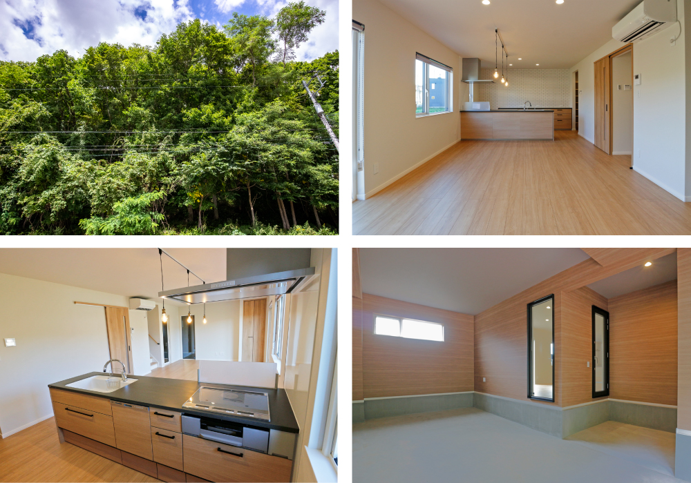 緑が見えるガレージハウス…こちら千歳市のオーナー様のお家です。9/10より3週間お貸し頂けることになりました☺