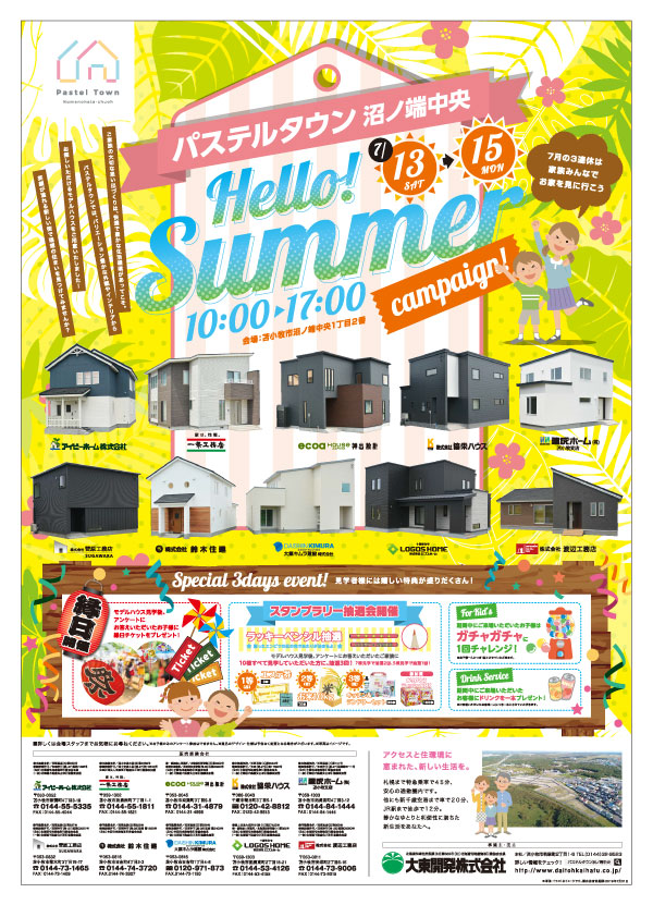 そして苫小牧の10社合同イベント!今回はモデルハウスでのスタンプラリーだけでなく、パステルタウン沼ノ端中央の新しい区画のOPENもあるんです!!すでに販売されているところが”第一期”、今回発表になったのが第二期になります。お手頃価格な土地をお探しの皆様、見学ついでにスタンプラリーで遊んでいきませんか?