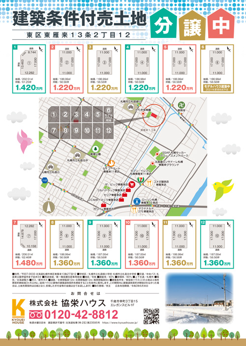 今回札幌の一部の地域に配布されるチラシ、裏面は東雁来の土地情報になっています。せっかくなのでこちらも掲載しておきます。(内容は土地情報館とほぼ同じです)