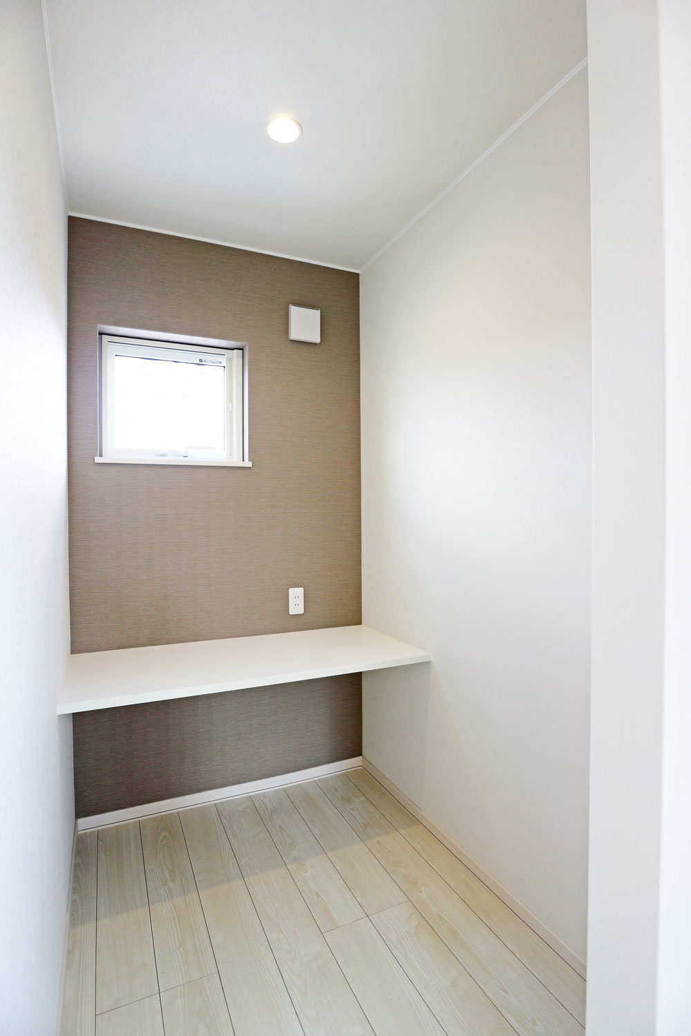 延床面積28坪とコンパクトながら、1階に書斎・3帖のゆったり脱衣室・物入などを確保した無駄のない作り。高気密・高断熱に加え、協栄ハウスオリジナルの特許取得商品“全室低温水床暖房”完備で、冬はあったか、光熱費も抑えた省エネ住宅。協栄ハウスの家のあたたかさ、標準装備を実際にご覧になり、快適さをご体感いただければと思います。