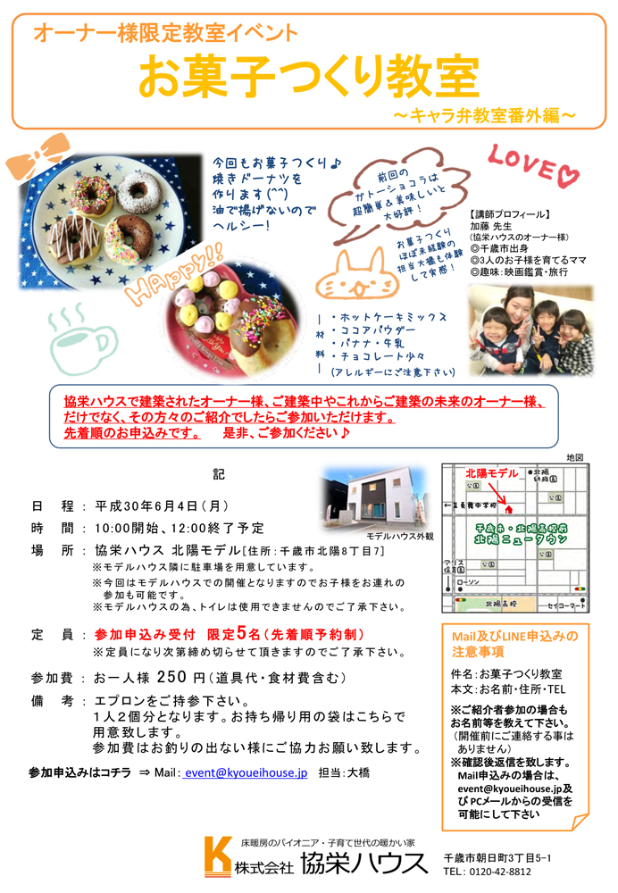 6月のオーナー様向けイベント 千歳・恵庭・札幌|モデルハウス・新築・戸建て・土地【協栄ハウス】 > 全件 > イベント > 6月のオーナー様向けイベント 記事が埋もれてきたので再度アップします!\(゜ロ\) 定期的に開催しているオーナー様向けイベント、今回はお菓子作り第二段!油で揚げない焼きドーナツ! ヘルシーだからお子様のおやつにぴったり(≧∇≦) 6月なんでまだちょっと早いですが、参加申し込み受付いたします♪メールまたはLINE(こちらはオーナー様専用です)でお申込みください(^^)/ « 前のページ 一覧に戻る 次のページ » アーカイブ 年を選択 2025 (11) 2024 (81) 2023 (87) 2022 (119) 2021 (165) 2020 (154) 2019 (166) 2018 (246) 2017 (206) 2016 (47) 2015 (23) 2014 (5) カテゴリー カテゴリを選択 全件 お知らせ イベント その他
