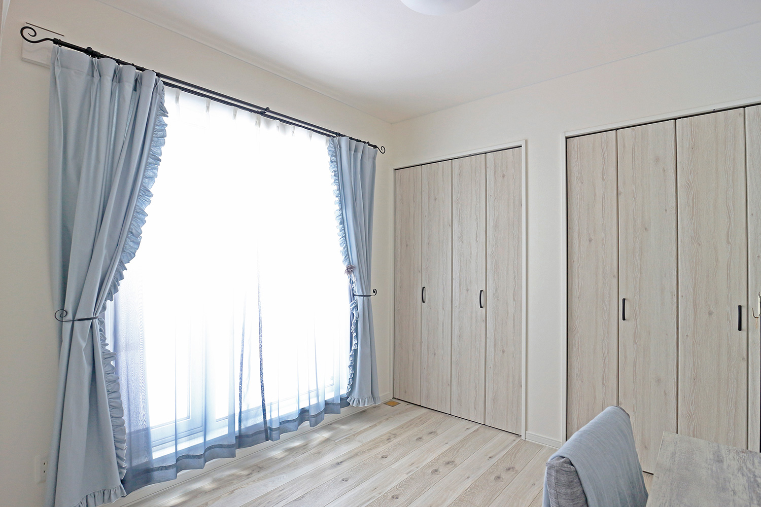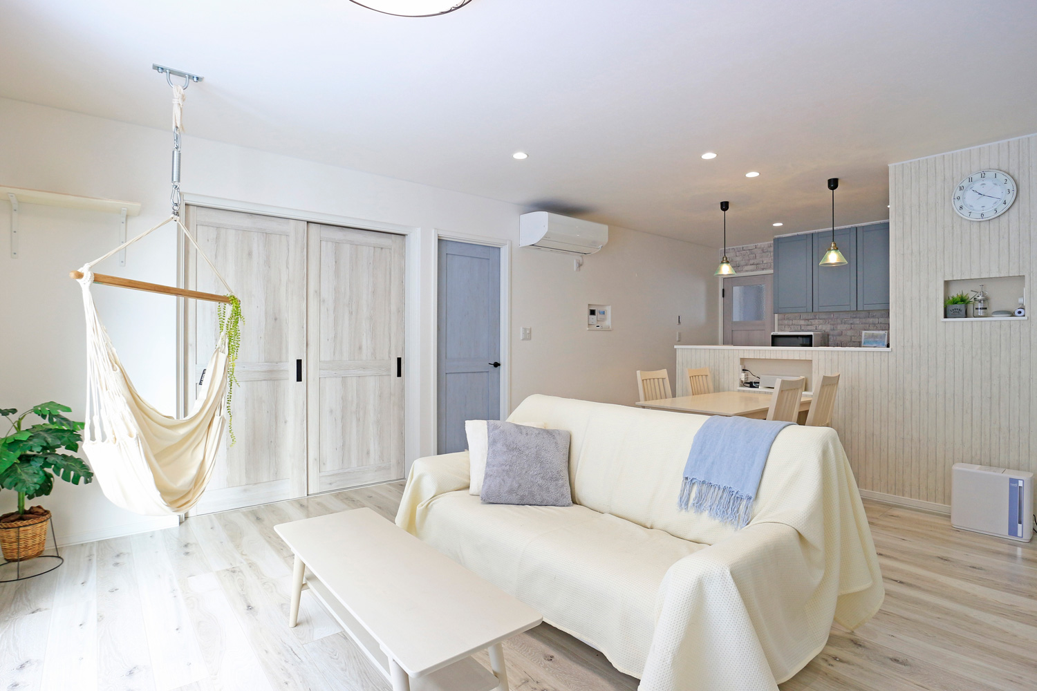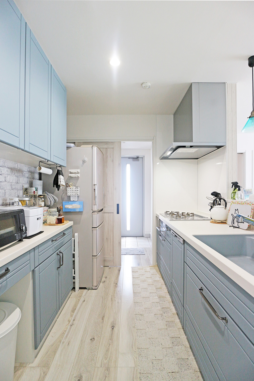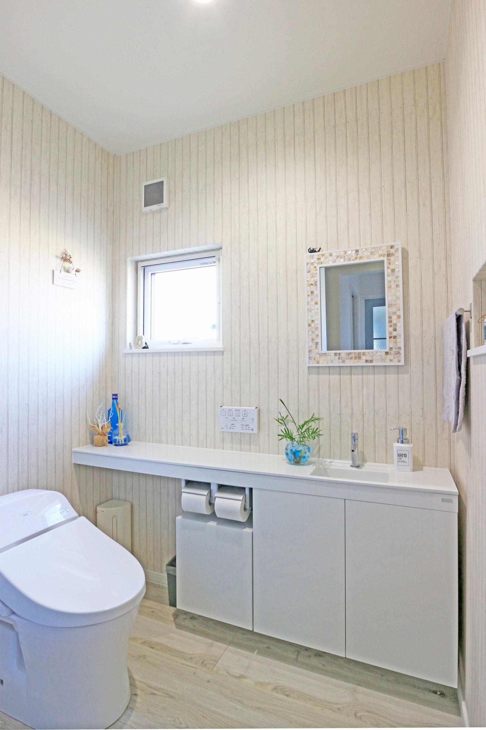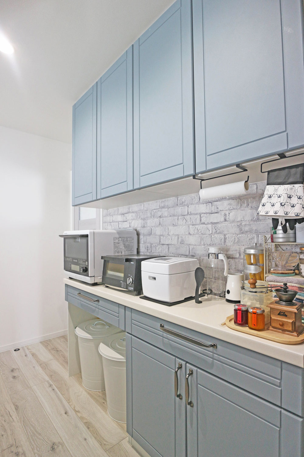 白・グレー・ブルーの3色で家全体をまとめて統一感を出したN様邸。動線を工夫し、必要なところに設けた収納スペースによって時短家事ができるように