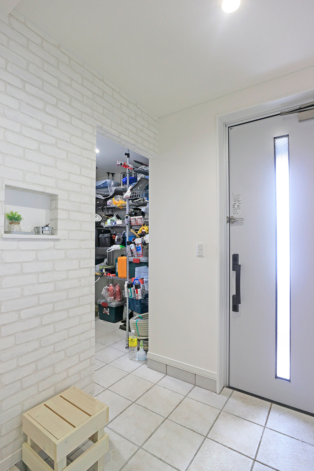 玄関の隣はほぼご主人の工具保管場所。玄関が床暖で暖かいから冬も工具が錆びません