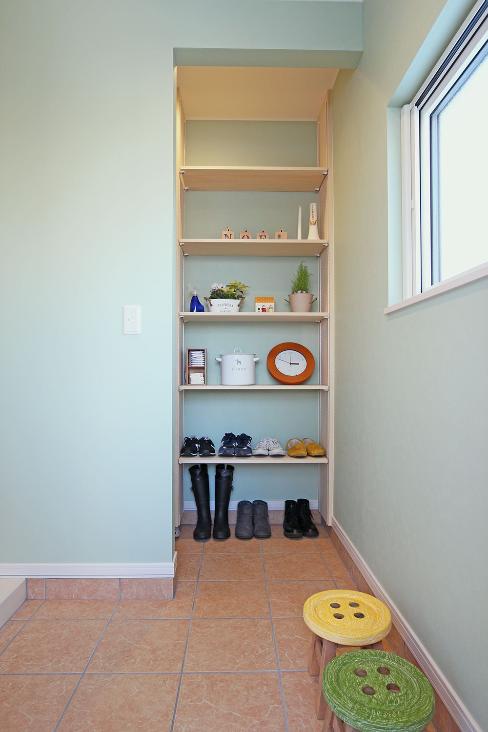 玄関から見たシューズクローゼットなのですが、まるで雑貨屋さんの入り口みたい!!