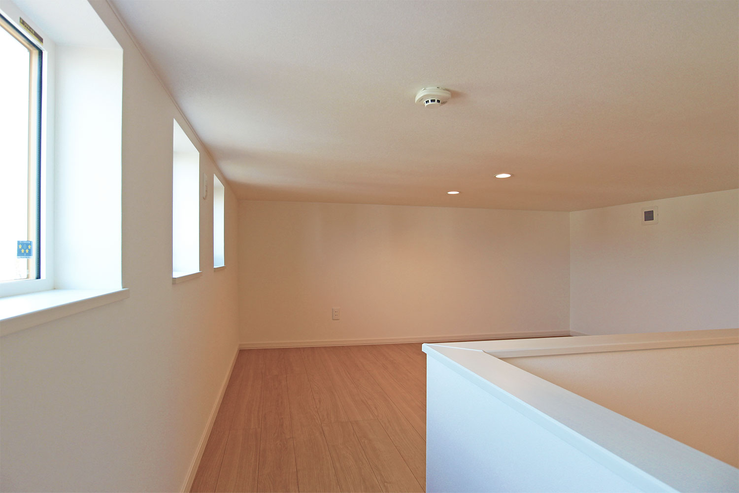 階段で行き来できるロフトスペースはなんと広さ6帖!収納スペースとして、お子様の秘密基地として大活躍