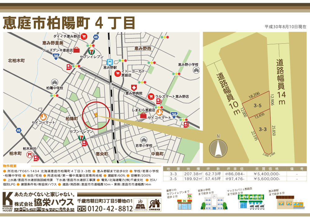 久しぶりに恵庭の自社地を仕入れました!柏陽4丁目です。とりあえず土地情報館にあるのと同じのを貼りますね~(゚Д゚)ノ