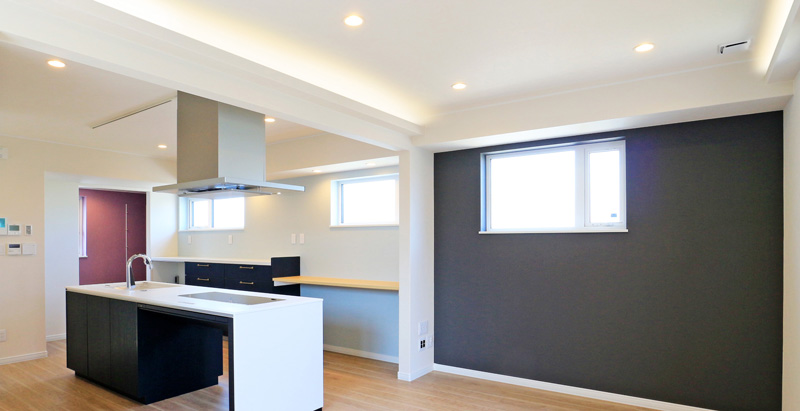 間接照明も印象的で、眺めているだけでリラックスできそうなLDKです。