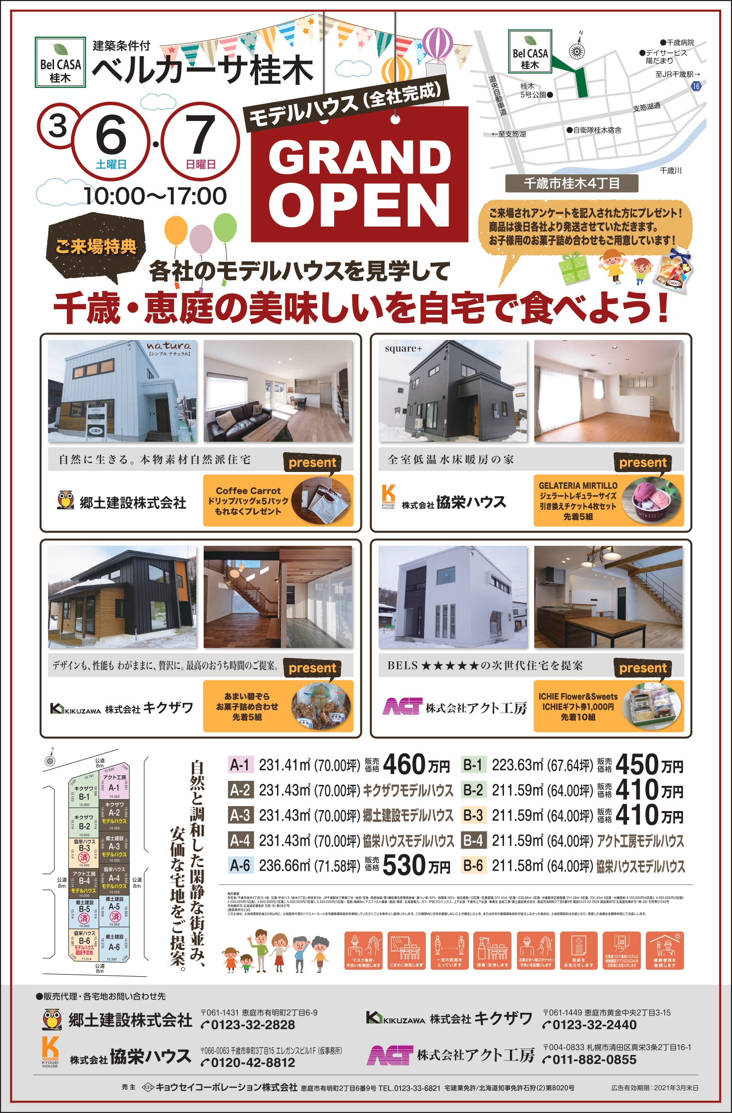 今週末千歳の桂木にて、住宅会社4社合同イベントを開催します。協栄の桂木モデルは3/7で公開終了なので、今週が最後のお披露目になりますね。そしてなんと今回のイベント、各社千歳や恵庭の”美味しいもの”を用意してるんです! ↓ ↓