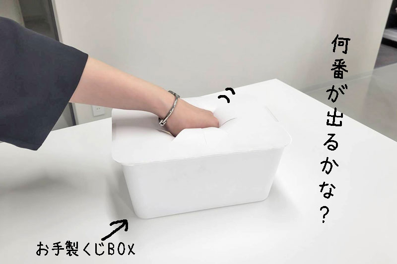 千歳市内のモデルハウスや見学会場を回っていただいた皆様、ありがとうございます!(そしてお疲れ様でした)先日、社内でお手製のくじBOXを作成し、ささやかな抽選会を行いました。参加者様に渡したものと同じくじを折って箱に入れ、ひたすらシェイク。最後にスタッフに引いてもらいましたよ!
