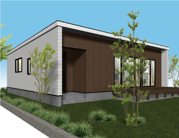 ちょっとずつですが、外壁の茶色も見えるようになってきましたね。この家が、今月下旬にはこんな感じになる予定です。↓