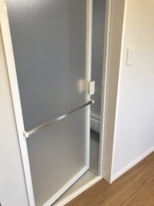 入浴終わりにドアを開けると、ユニットバス内でバスタオルが手に取れるのです。