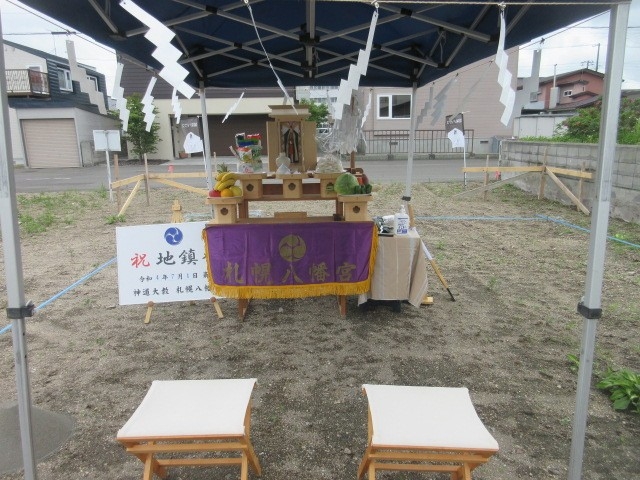 地鎮祭とは土木工事や建築などで工事を始める前行う、その土地の守護神を祀り、土地を利用させてもらうことの許しを得ます。神式と仏式があり、一般的には神を祀って工事の無事を祈る儀式と認識されております。そのため、安全祈願祭と呼ばれることもあるようです。