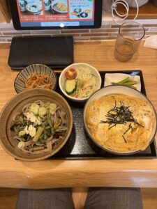 山菜そばとかつ丼のセットなので半々の丼ものと勝手に思い込んで、山菜そばを普通もりにして注文したら…