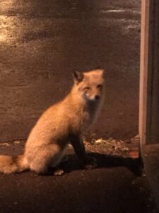 物欲しげにゴミステーションを見つめる狐。