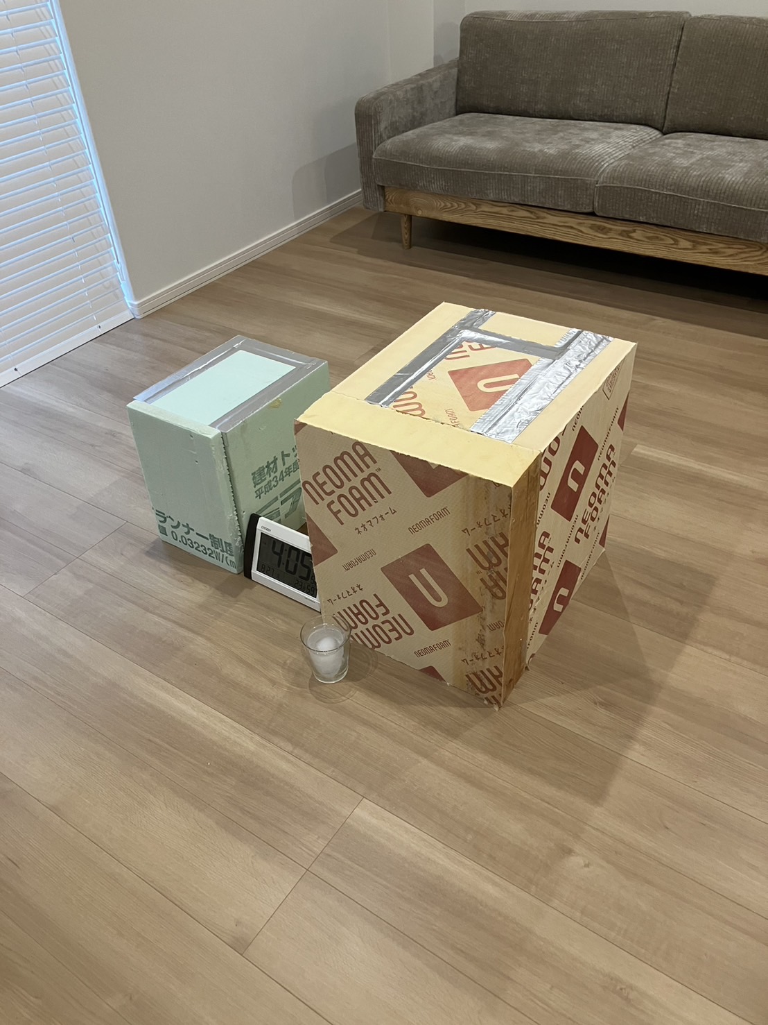 この箱一つ作るにも紆余曲折ございまして、結局はアフターメンテナンスの藤枝さんの手をお借りする始末。。おかげさまで立派な実験グッズができました。