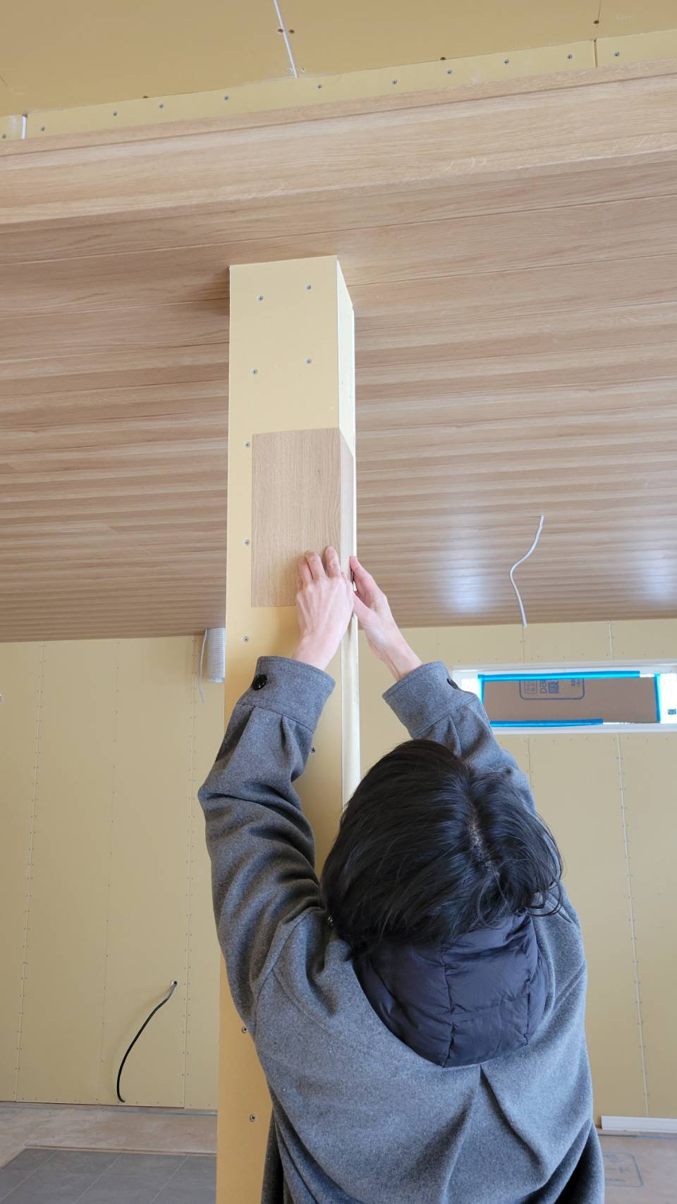 構造上、抜けなかった柱の化粧材の色味も確認。
